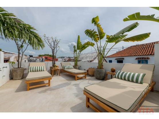 Disfruta de las hermosas áreas turísticas y naturales que ofrece Cartagena, así como de excelentes opciones gastronómicas en los restaurantes cercanos. Si buscas un poco de tranquilidad, podrás relajarte y desconectarte en el jardín o en la piscina de la propiedad. También cuenta con un hermoso jardín de techo que agrega un toque de naturaleza a tu hogar.